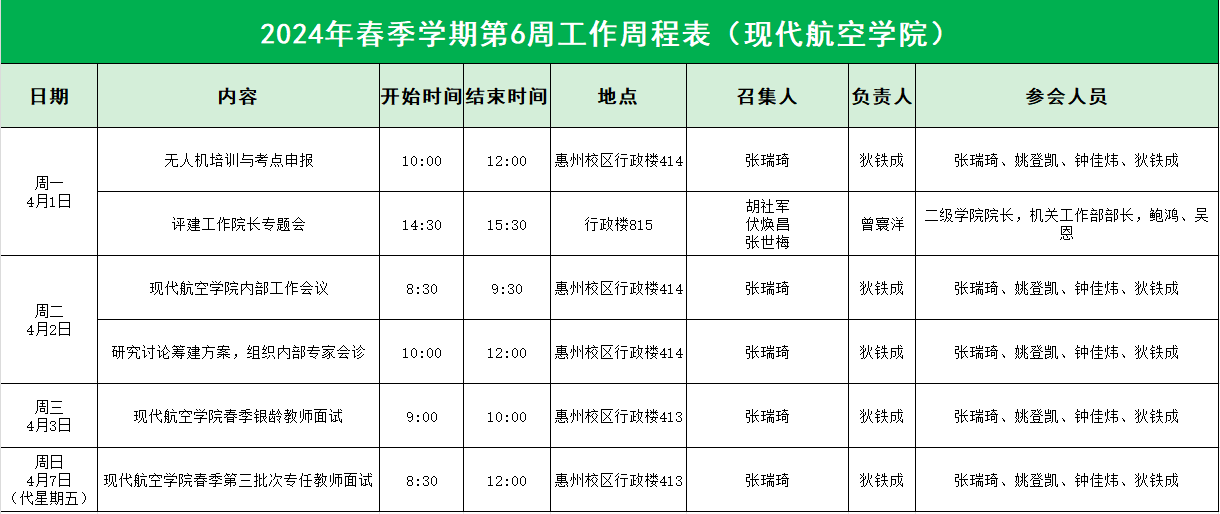williamhill威廉希尔2024年春季学期第6周工作周程表
