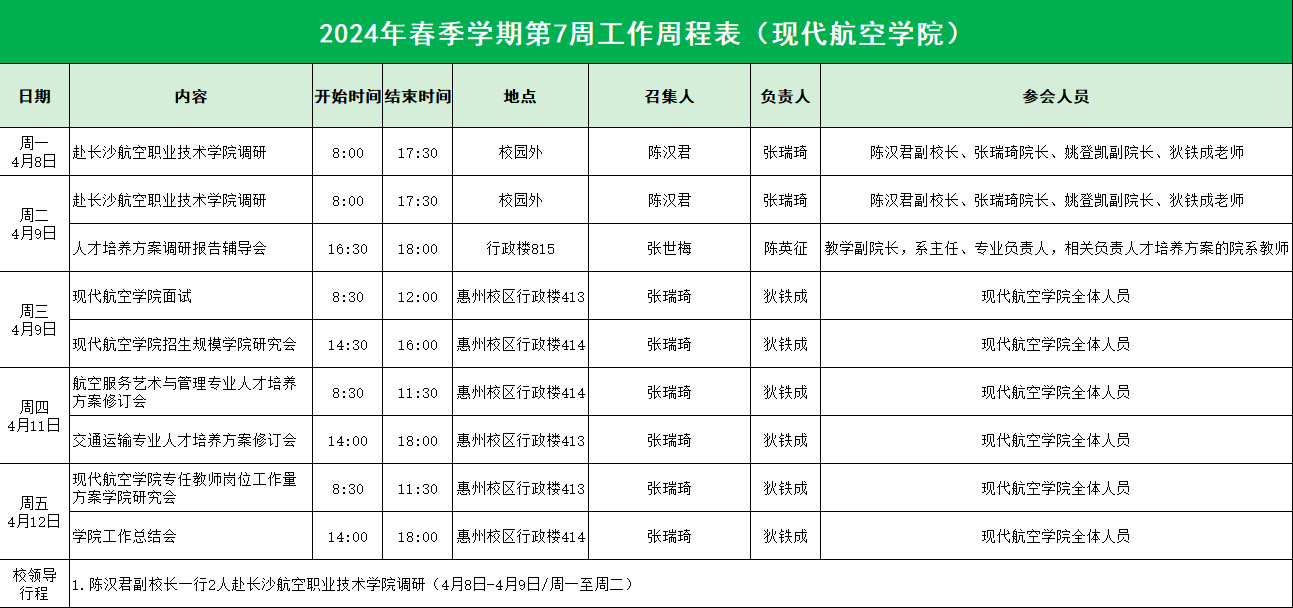 williamhill威廉希尔2024年春季学期第7周工作周程表