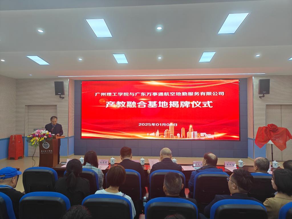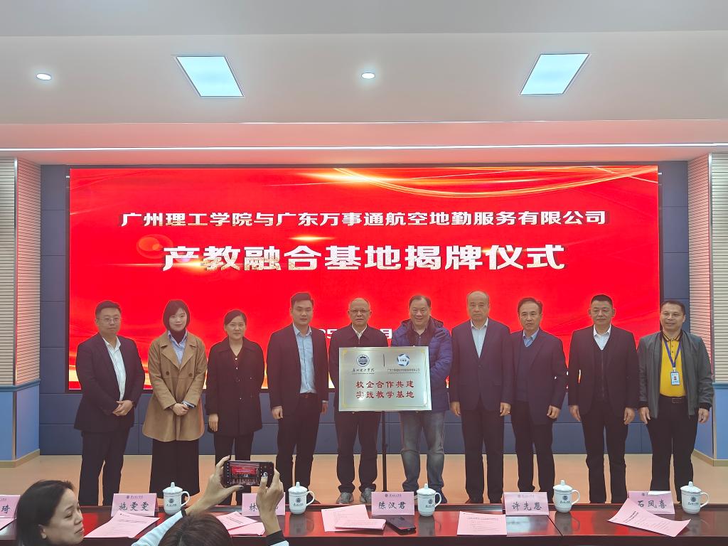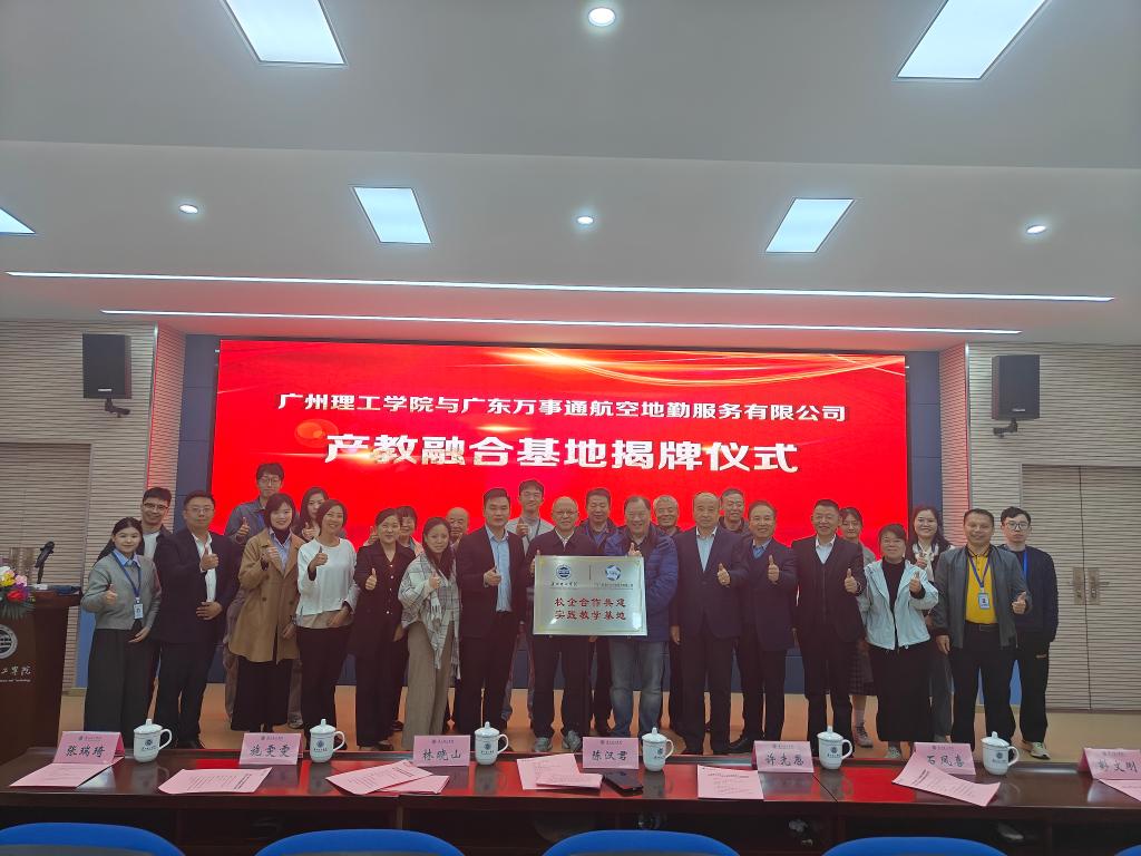 在热烈的掌声中,陈汉君副校长、许先恩总监和林晓山总监等人共同为校企合作揭牌。随着红绸布的缓缓落下,“广州理工学院-广东万事通航空地勤服务有限公司校企合作基地”的牌匾赫然在目。从此刻开始,标志着双方的合作正式拉开帷幕,也预示着双方将在未来的发展中携手并进、共创辉煌。