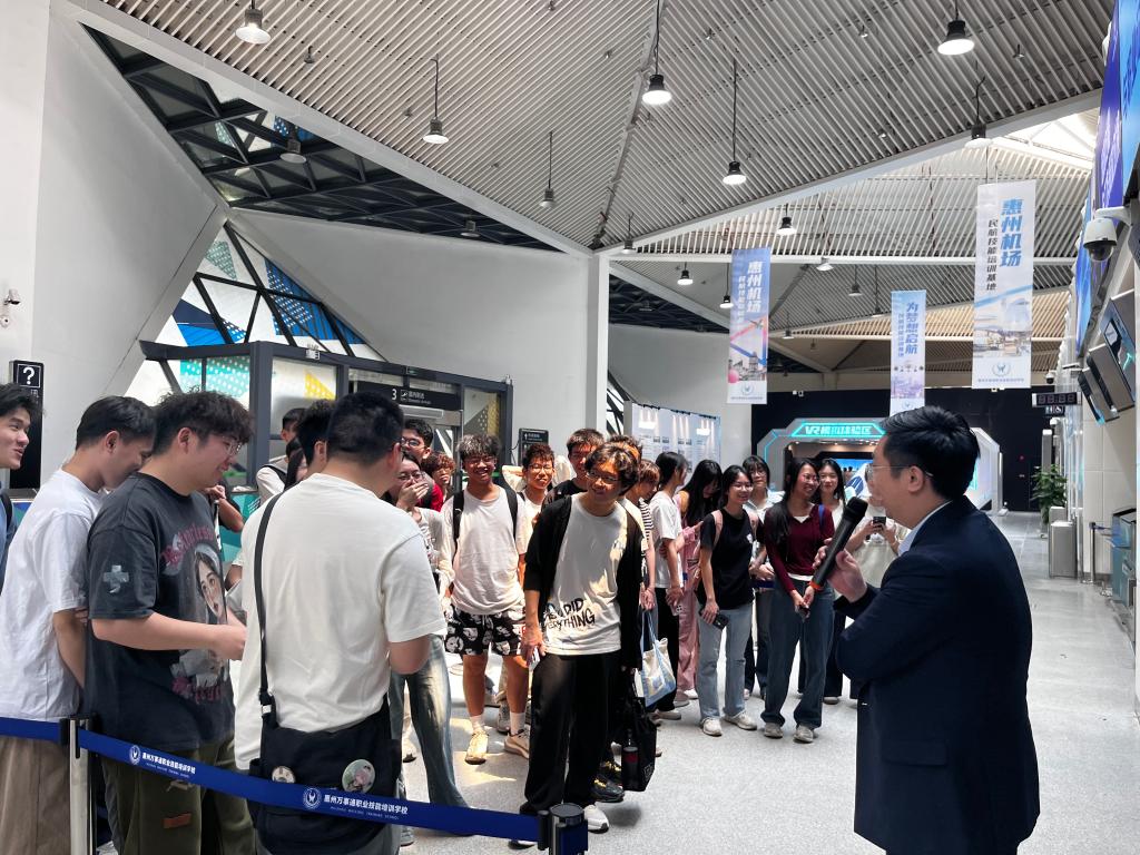 除了实地参观,惠州机场民航技能培训基地还精心组织了专业讲座。资深的行业专家结合丰富的实践经验,深入浅出地讲解了航空运输、机场运营管理、航空安全等多个领域的知识,分享了行业发展的最新动态和趋势。讲座过程中,同学们积极提问,与专家展开热烈互动,拓宽了专业视野,也对未来的职业发展有了更清晰的方向。