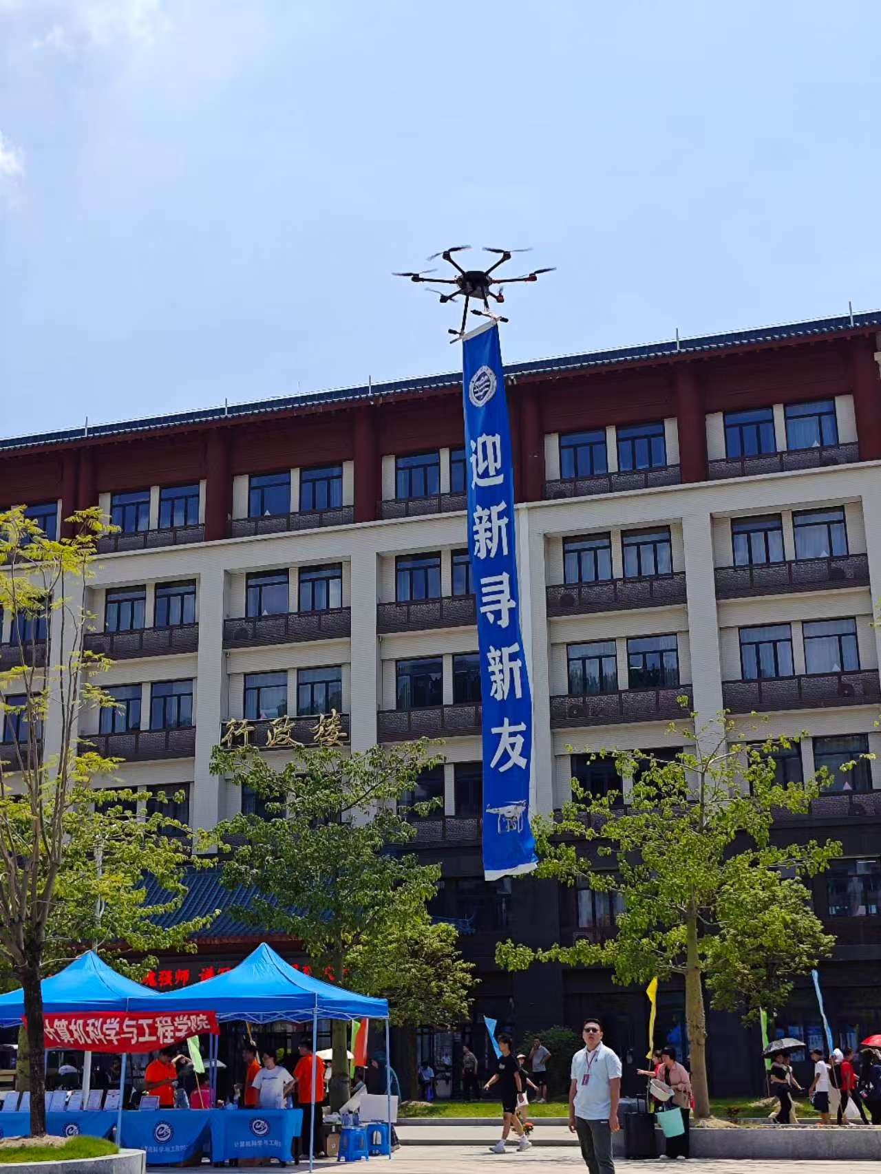 值得一提的是,在刚刚结束的“第27届中国机器人及人工智能大赛”广东省选拔赛中,williamhill威廉希尔荣获国家级一等奖和二等奖的两支团队核心骨干成员,也带着他们的作品,加入到了我们迎新活动的展示中来。本次迎新的最大亮点是“无人机先锋工作室”的现场首飞展示。工作室成员在指导教师的率领下,成功完成多架无人机的飞行演示,吸引大量新生及家长驻足观看。飞行表演不仅展示了学院在无人驾驶航空器领域的实践成果,也激发了新生对专业学习的浓厚兴趣,成为迎新现场一道亮丽的风景线。