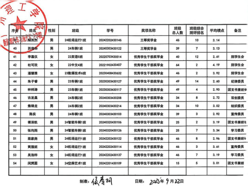 九、2024-2025学年奖学金最终名单以校级公示名单为准。