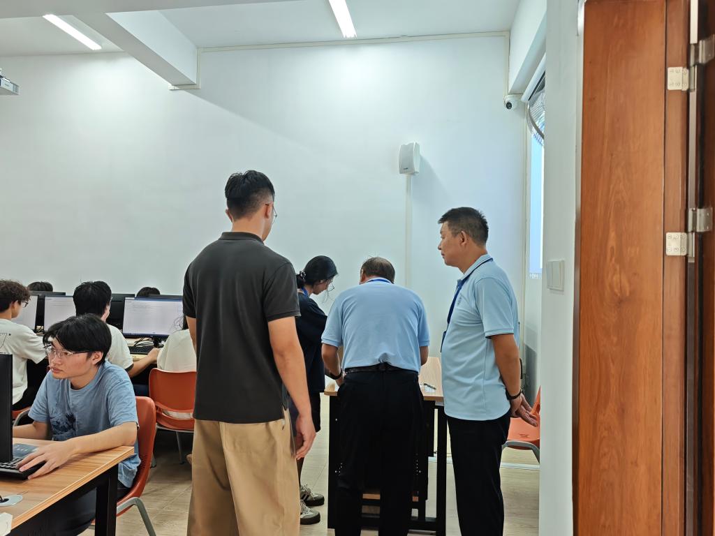 当日,学院院长简弃非、常务副院长张瑞琦、副院长姚登凯、钟建军等院领导组成巡查小组,先后来到教学楼、实训楼等多个考场。每到一处,院领导都认真查看考场环境、监考教师履职情况以及学生答题状态。重点检查了考场纪律执行、考试设备运行、监考流程规范等方面,详细询问考试组织过程中是否存在困难。