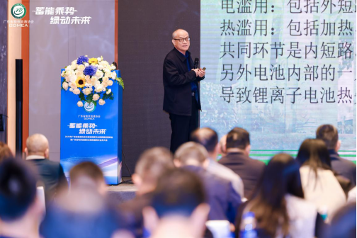 大会上,新能源汽车工程学院院长简弃非作题为《新能源动力电池起火机理与应对方案》的专题报告,从技术攻关与产教协同视角深入剖析行业痛点。报告指出,随着新能源汽车保有量的快速增长,电池热失控引发的安全问题已成为制约产业可持续发展的关键挑战。他结合学院科研团队的最新成果,系统阐释了电池材料缺陷、过充过放、机械滥用等多重因素下的起火机理,并分享了“智能预警-主动防控-高效灭火”一体化解决方案。