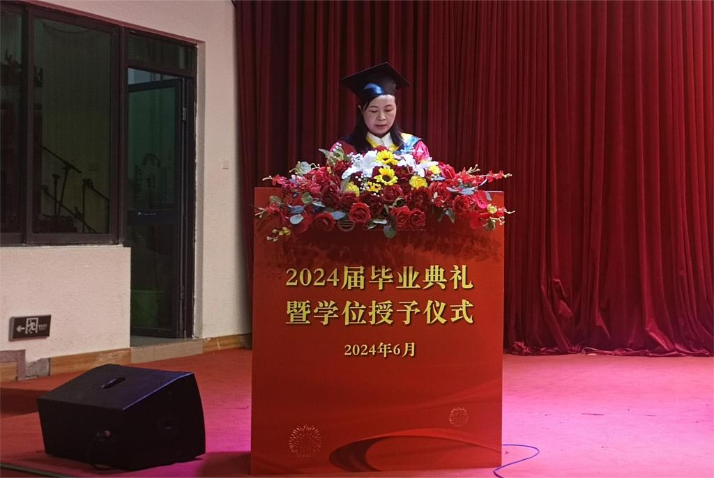 新能源汽车工程学院院长简弃非教授致辞,建议同学们要敬业专业精业,就是用敬畏、敬重的态度对待自己的工作,认真负责、一心一意、精益求精。要养成良好习惯,好的习惯,让大家的生活不再凌乱,内心不再空虚。要终身学习,世界不断变化,科技、社会、经济都在不断进步。终身学习可以帮助同学们跟上这些变化,适应新的情况,保持竞争力。无论是工作上的新技术还是社会变革,学习都是应对变化的最佳途径。从今天起,同学们的身份将从广州理工学院的学生转变为广州理工学院的校友。未来的日子里,广州理工学院的故事,将在同学们创新奉献的奋斗中书写;广州理工学院的荣光,将在同学担当的捷报中闪耀。他提出,同学们永远是母校的牵挂,母校永远是大家温暖的港湾,希望同学们常回家看看。