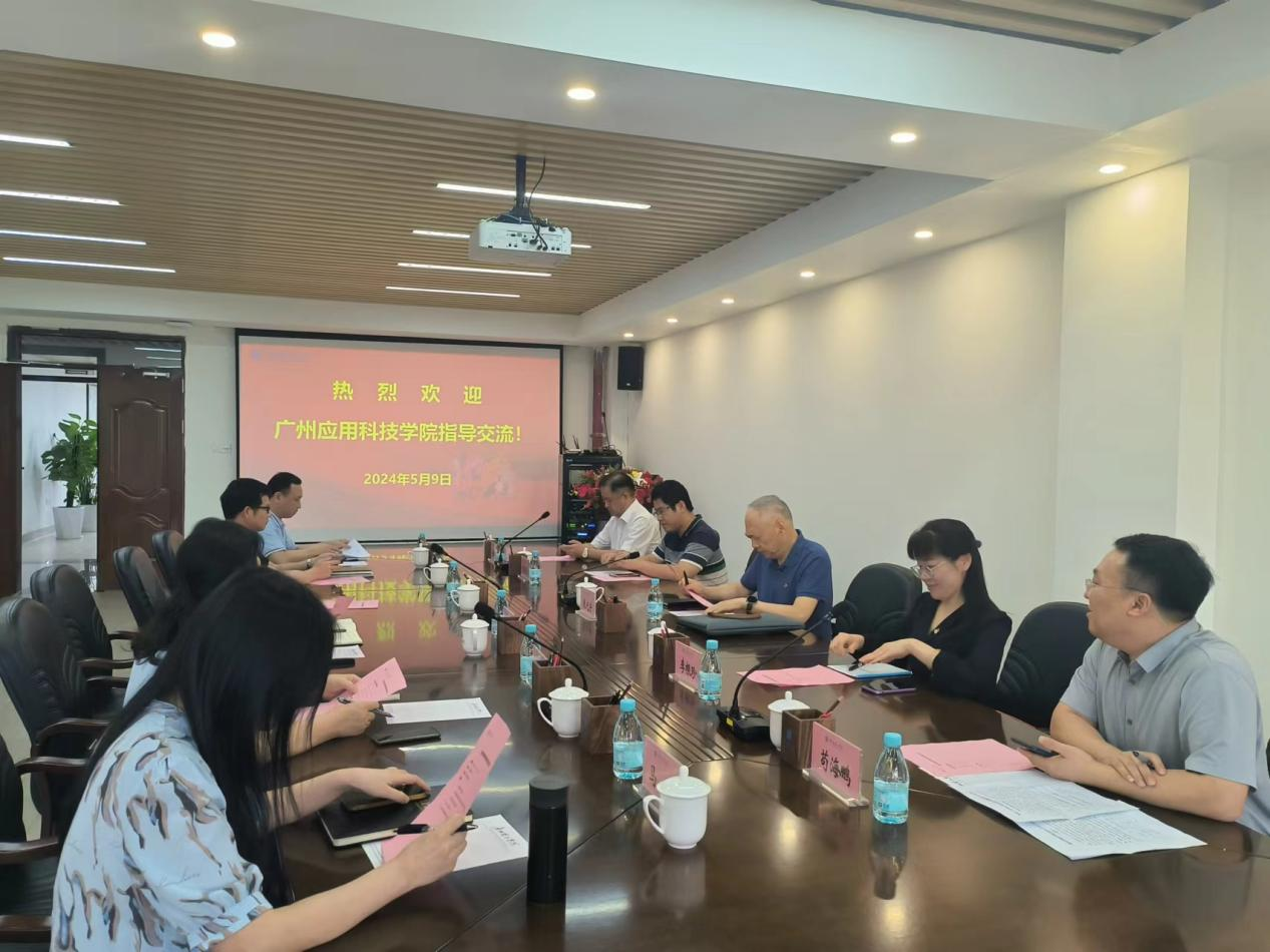 5月9日下午,广州应用科技学院执行校长张光宇率领校长助理兼人事处处长李根珍、科研处处长荀海鹏、教务处处长林长青、教学质量监控与评估中心副主任邱俊义一行5人来williamhill威廉希尔就合格评估工作进行调研交流。williamhill威廉希尔教学管理部部长石玉强、人事处处长鲍鸿、评建办常务副主任陈英征、质评中心主任马郁、科研处副处长詹夏然等参加了交流会。交流会由副校长张世梅主持。