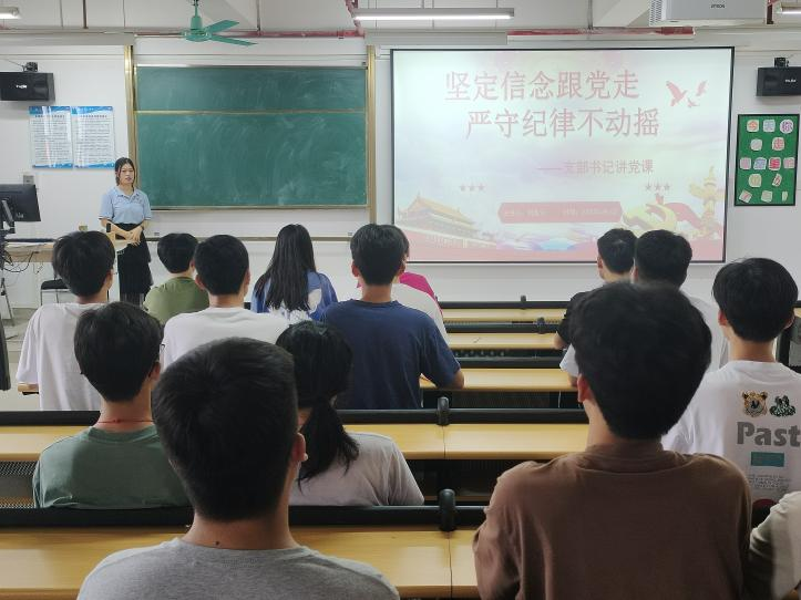 6月6日下午,新能源汽车工程学院学生党支部在13-601教室开展题为“坚定信念跟党走严守纪律不动摇”的党纪学习教育专题党课,学生支部书记刘紫云主讲,支部全体党员参加。
