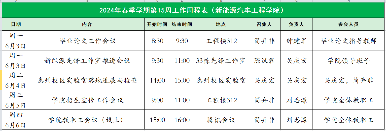 2024年春季学期第15周工作周程表(新能源汽车工程学院)